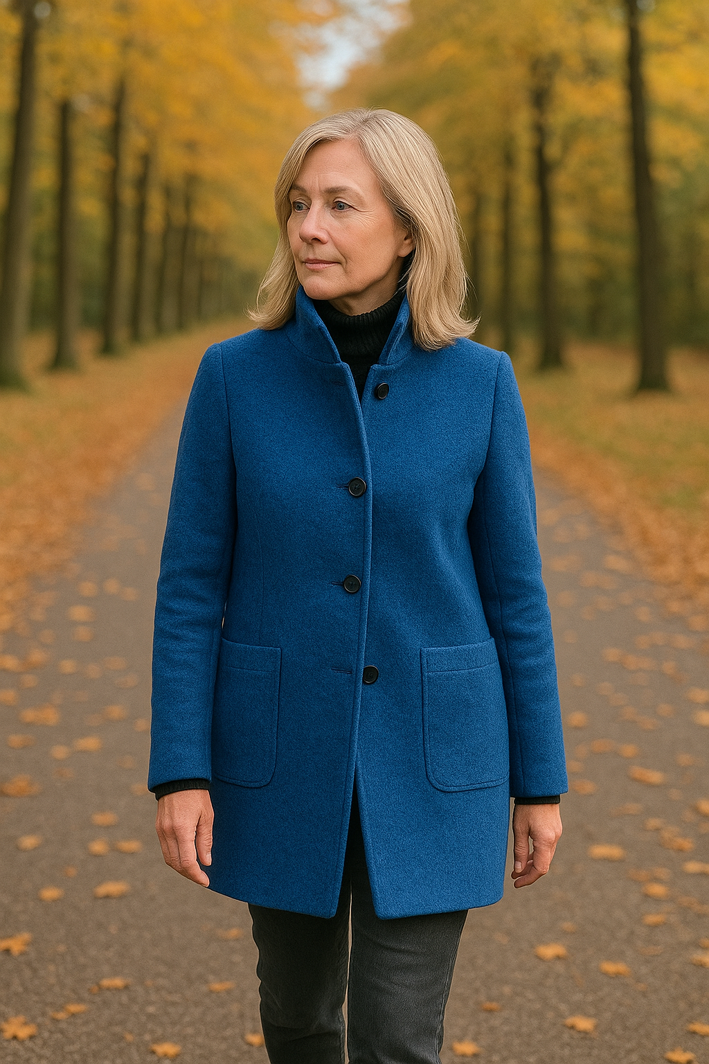 Elena er en stilfuld frakke, der kombinerer varme og klasse. Med sit lige snit og tidløse knapper udstråler frakken enkelhed og elegance – perfekt både til hverdagsbrug og mere formelle lejligheder.