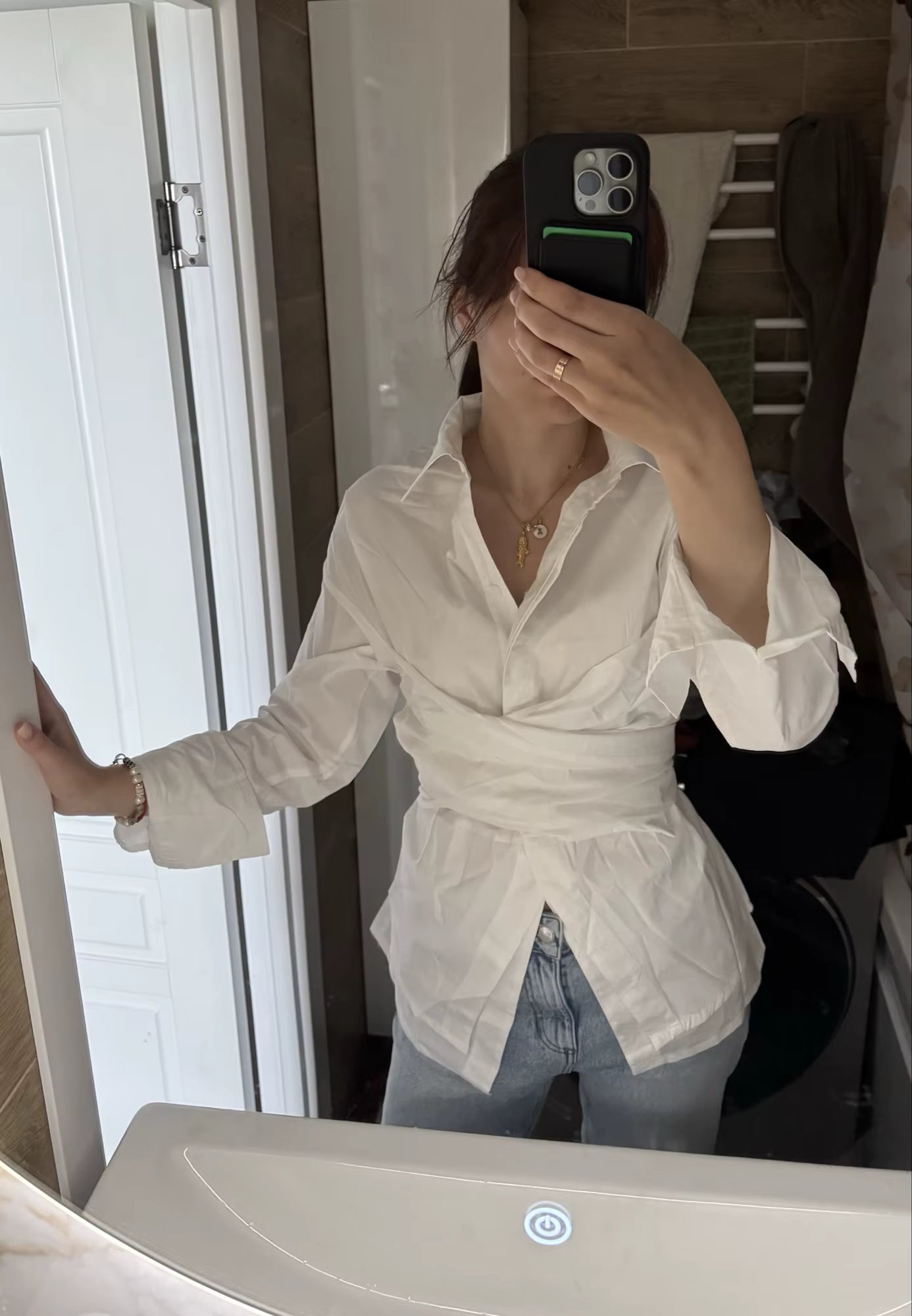 Virkelig fin wrap-bluse, der sidder flot. Stoffet er lidt tyndere, end jeg troede, men stadig behageligt og let at style med jeans eller nederdel.